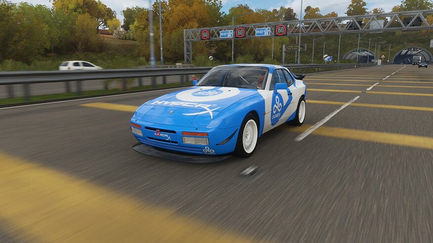 and now finally, my most recent(and heavilly worked on) livery that I just love driving around in is the 1989 Porsche 944 Turbo Designed for my support of my favorite Esports team Cloud9. I had to do everything from scratch, including the logo, and I love how it came out.