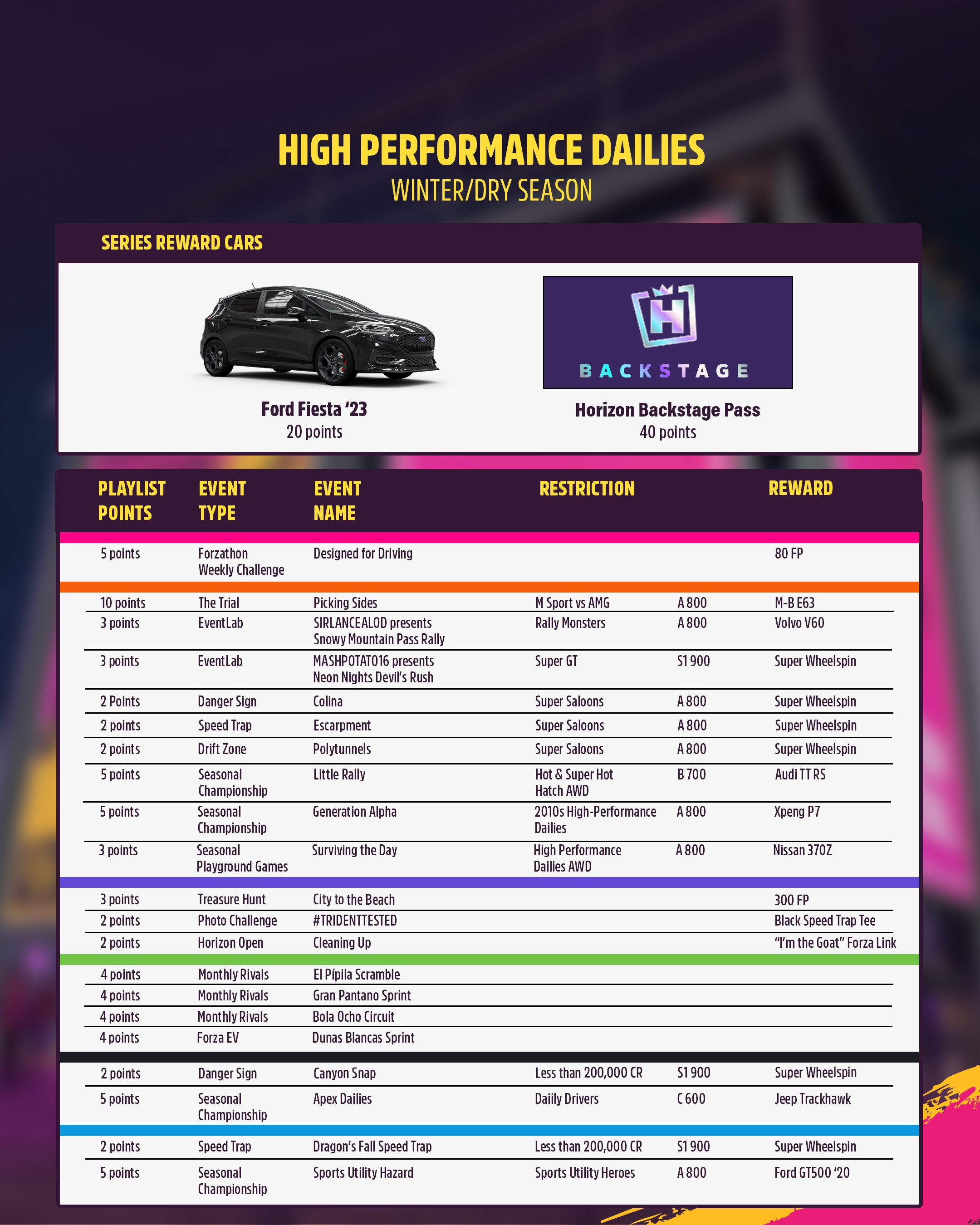Collect the 2023 Ford Fiesta ST with Festival Playlist points from the third season of the High-Performance Dailies Series this week. Continue to earn points from each season to unlock the 2023 BMW M2 and 2021 MG MG6 XPower from this series.