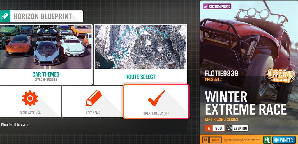 Gamertag: EmeraldSundisk Route Name: Bamburgh South Circuit Route Start Location: Bamburgh Pinewood Trail Description: A tarmac technical circuit using some of the area’s narrower roads. Length of route (miles): 2.3 Laps (If circuit): 2 laps Season Chosen: Autumn Time taken to complete the entire event: 3 minutes, 50 seconds