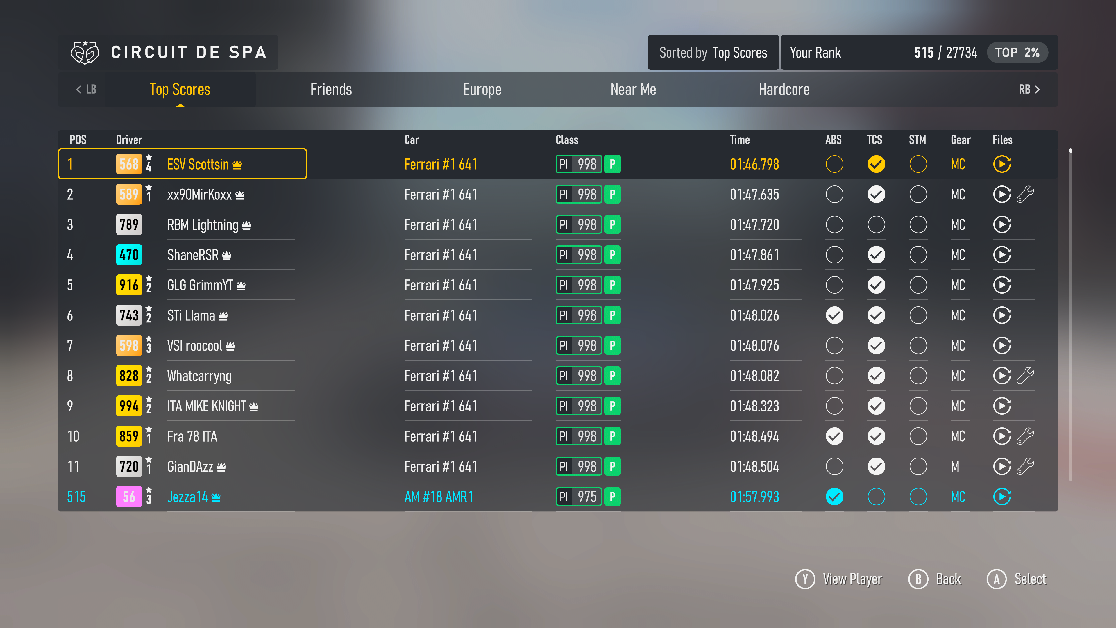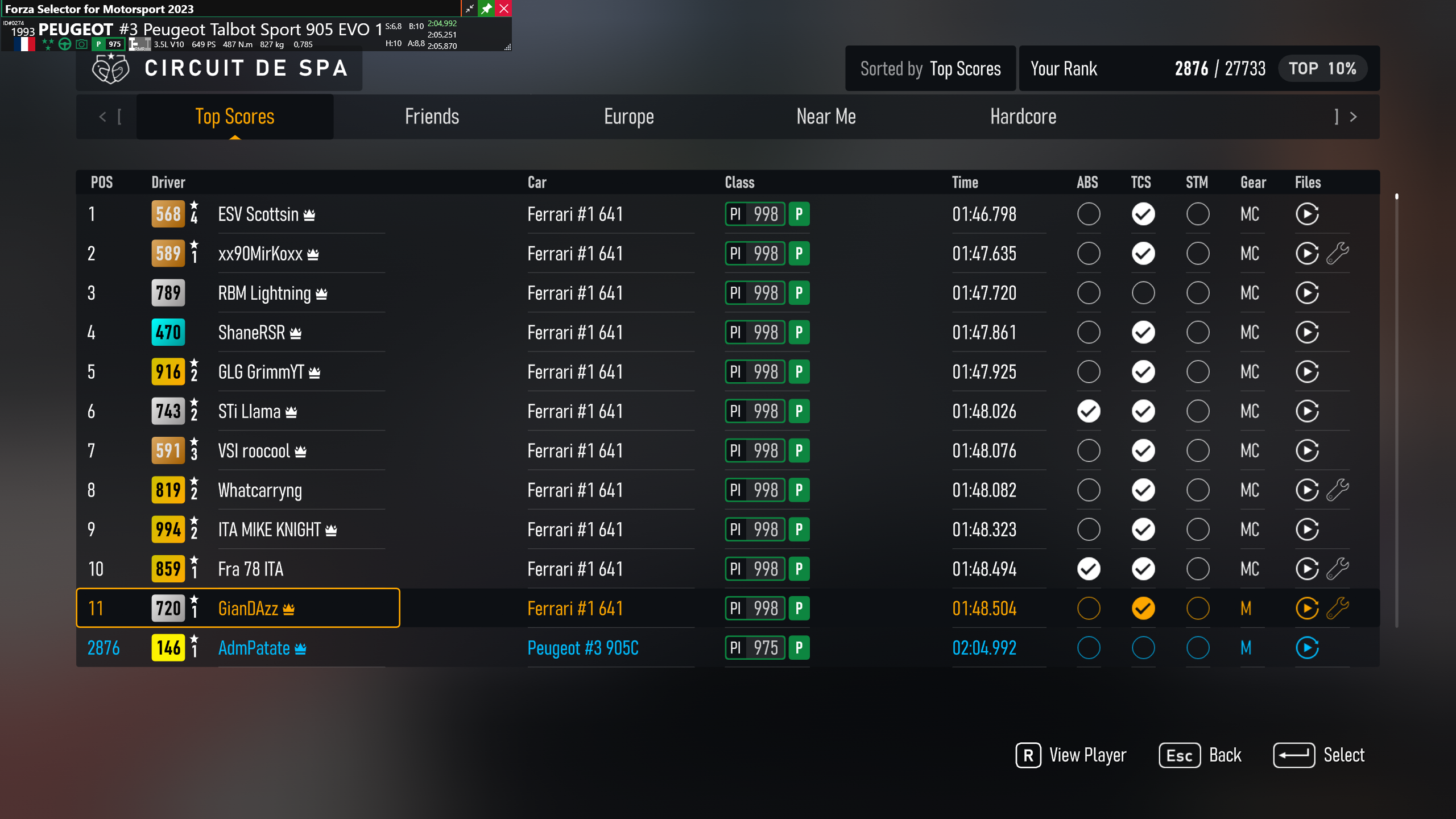 Feels pretty easy to drive and can take Eau Rouge flat out. No doubt can be improved though, as I pretty much just revised my existing build to 975 and can’t recall spending much time on the tune before.