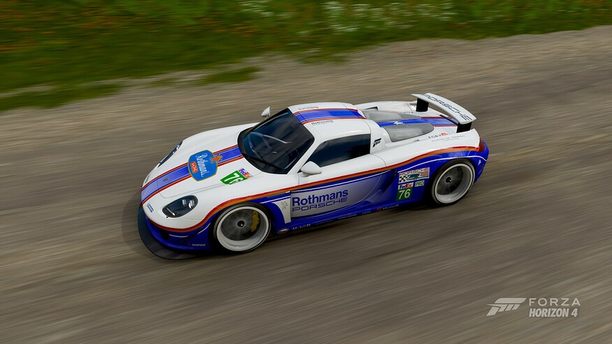 I was trying to decide on a decent livery for the Carrera GT… I’ve been a huge fan of this car for years but never managed to put together a proper livery for it. I started laying out some linework and then tired it with Rothmans colours… put a little more effort into it and it seemed to work. Polished it off with some added gradients and the final result seemed to work for me. Honestly, the Rothmans/Porsche livery can pretty much go on any Porsche… but I was really trying to make it a more unique and personal design here.