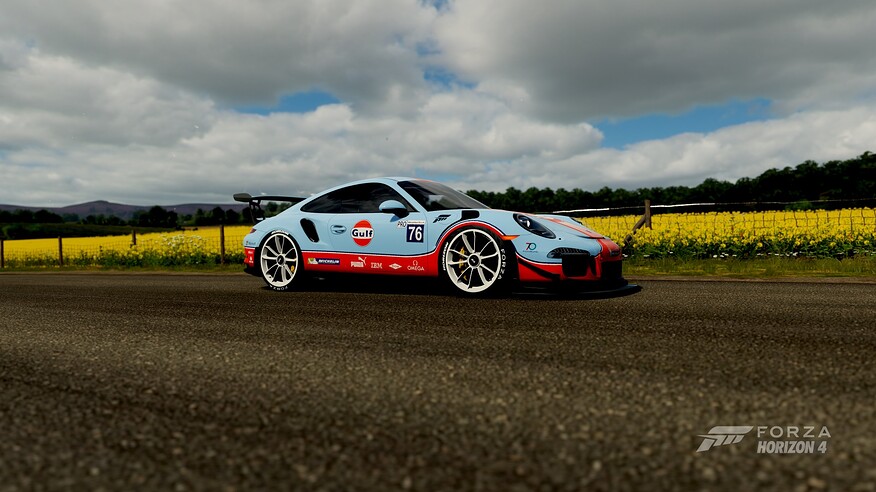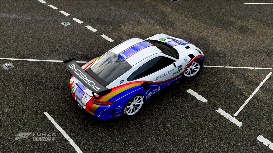 I whipped this together quickly in the FH4 paint booth right when the car was released. Same formula, but it’s a Porsche so obviously it’s going to look right. Changed up the colours a bit, tried a couple of alternates but I like this scheme the best.