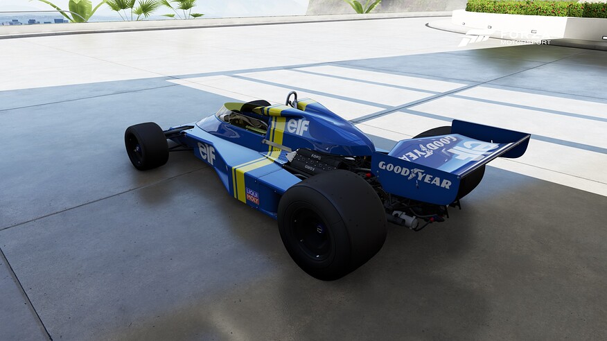 I designed an ELF livery based on Tyrrell cars from the same time period. I’m realizing that the older cars are a lot simpler, with fewer logos overall than the more modern cars we have today.